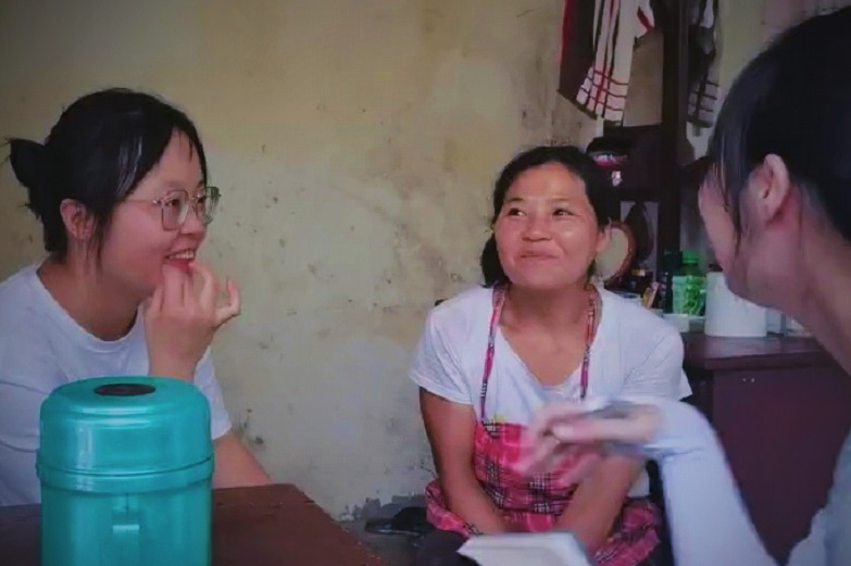图为队员采访田女士。中国青年网通讯员 肖寅影 摄